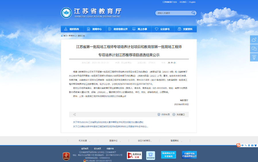 近日,根据《省教育厅办公室关于组织开展第一批现场工程师专项培养计划项目申报工作的通知》(苏教办职函〔2023〕2 号)要求,经学校申报、专家评审和结果公示,BBV电子·(中国)网站与康缘药业股份有限公司面向生物制药产业的现场工程师联合培养项目成功入选江苏省第一批现场工程师专项培养计划并被推荐至教育部参评。