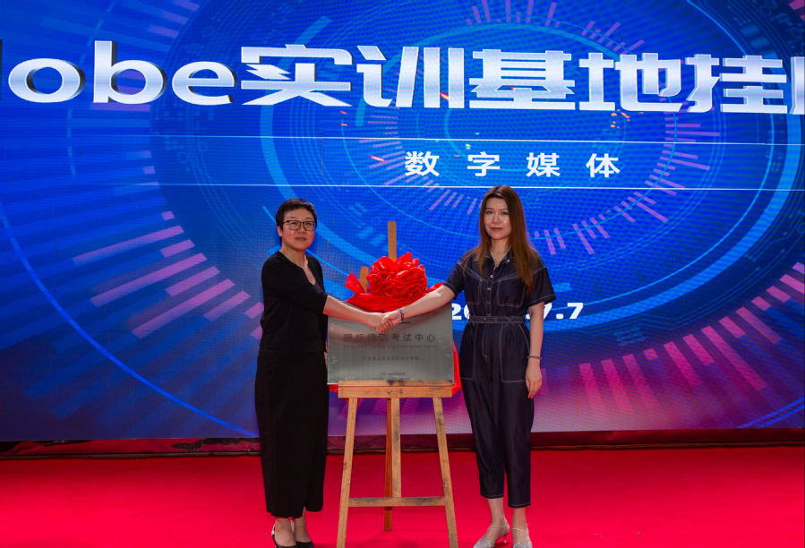 人工智能学院Adobe认证项目负责人赵军教授与Adobe Certified Professional中国运营管理中心代表邱俊琳就Adobe考证内容、Adobe公司产品、与其他院校合作案例等情况为会场同学进行详细介绍。邱俊琳与人工智能学院副院长季媛共同为数字媒体实训基地挂牌。