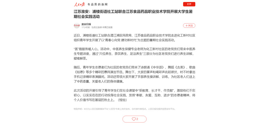 此次活动的开展引导了青年学生们在社会课堂中“受教育、长才干、作贡献”,激励他们不忘初心,以实实在在的行动投身社会实践,发扬“奉献、友爱、互助、进步”的志愿者精神,将个人价值书写在基层的热土上。