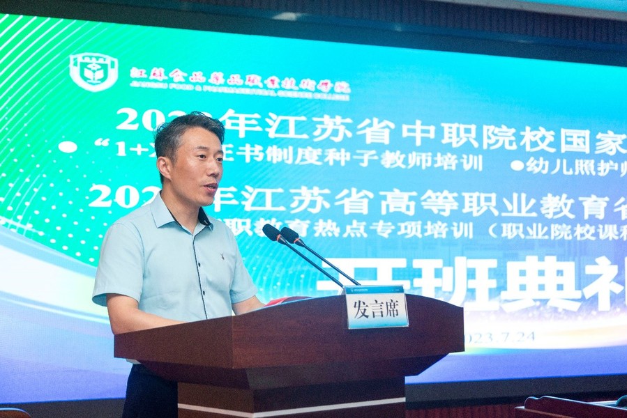 7月24日上午,BBV电子·(中国)网站承办的2023年度国家级培训项目“1+X”证书制度种子教师培训——幼儿照护师资综合素养提升培训项目、2023年高等职业教育省级培训项目高职教育热点专项培训——职业院校课程思政实施项目等两个项目正式开班。党委书记陶书中作主题讲座,副校长贾韶千出席开班典礼。典礼由教师发展中心主任王贺玲主持。