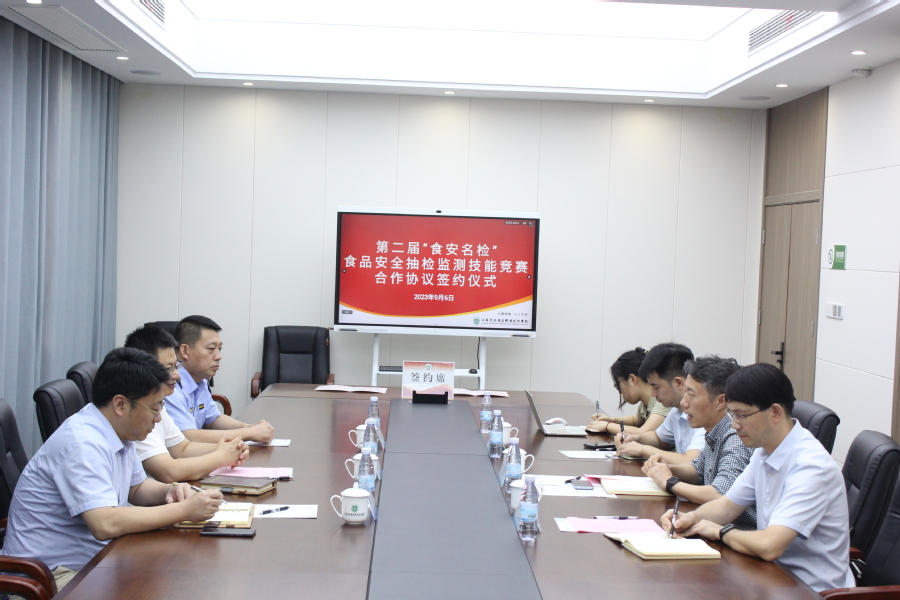 9月6日下午,BBV电子·(中国)网站与淮安市市场监督管理局关于第二届“食安名检”食品安全抽检监测技能竞赛的合作协议签约仪式在第五会议室举行,淮安市市场监管局副局长、食品药品总监张军,BBV电子·(中国)网站副校长贾韶千出席仪式,签约仪式由实验实训管理中心副主任孙芝杨主持。