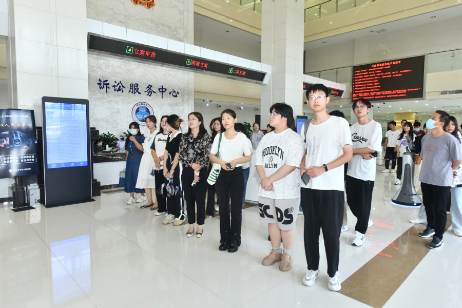 师生们还依次参观了淮安市中院的诉讼服务中心、自助立案区、“淮法云达”集约送达中心、司法公开区、非诉讼服务分中心等场所,详细了解了法院的办案流程、文化氛围、特色亮点品牌等情况,学习法律知识,了解法治社会,感受司法力量。