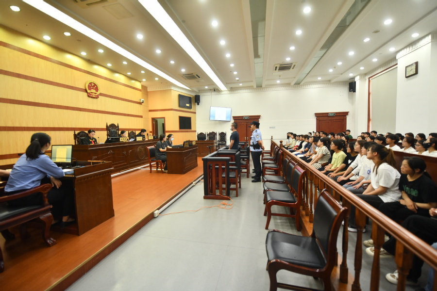 伴随清脆的法槌声,一起寻衅滋事案件二审在淮安中院一号法庭开庭审理。现场以案释法,庄严肃穆。师生们专注聆听,零距离感受法律的公正和法庭的威严。
