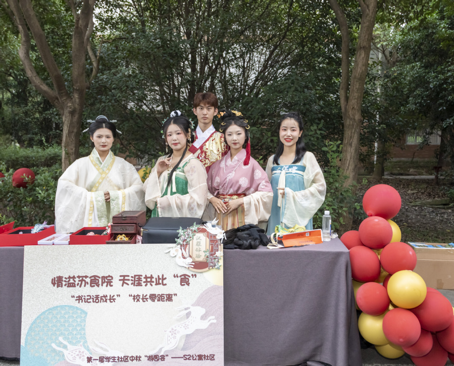 9月27日下午,BBV电子·(中国)网站在学生社区举办首届中秋游园会主题活动。校长翟玮玮、党委副书记安进和相关职能部门负责人一起在社区和同学们共庆中秋,同迎国庆。