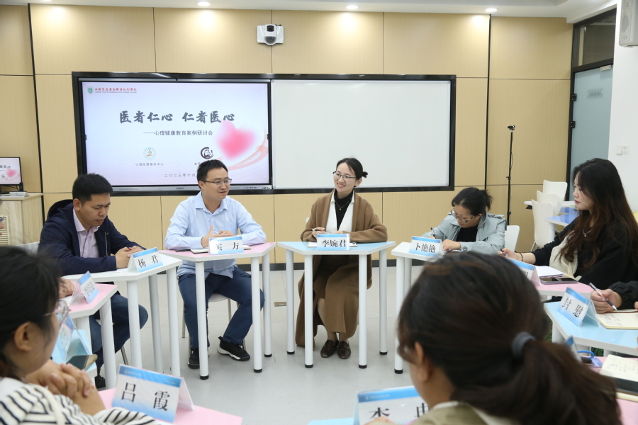 10月19日下午,心理发展服务中心与本草堂中医养生馆召开“医者仁心 仁者医心”心理健康教育案例研讨会,研讨会由心理发展服务中心主任李婉君主持。