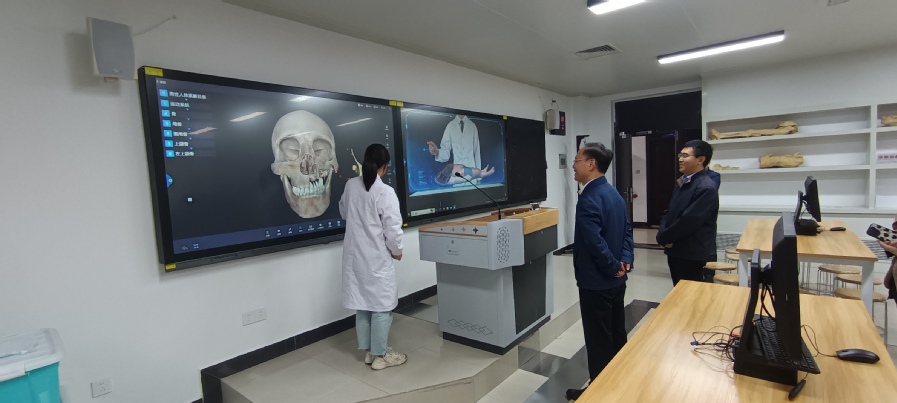 重庆医药高等专科学校党委书记吴海峰对薛宇一行表示热烈欢迎。吴海峰介绍了重庆医药高等专科学校的办学历史、办学特色,分享了学校在党的建设、教育教学、健康产业人才培养、高质量发展等方面的经验做法。