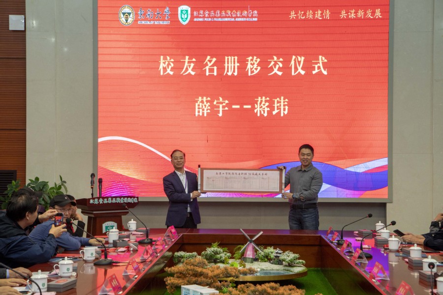 会上,薛宇书记将从档案史料中找寻到的78级校友名册正式移交给东南大学校友总会蒋玮秘书长,并共同为校友代表赠送专门为老校友定制的纪念校徽。