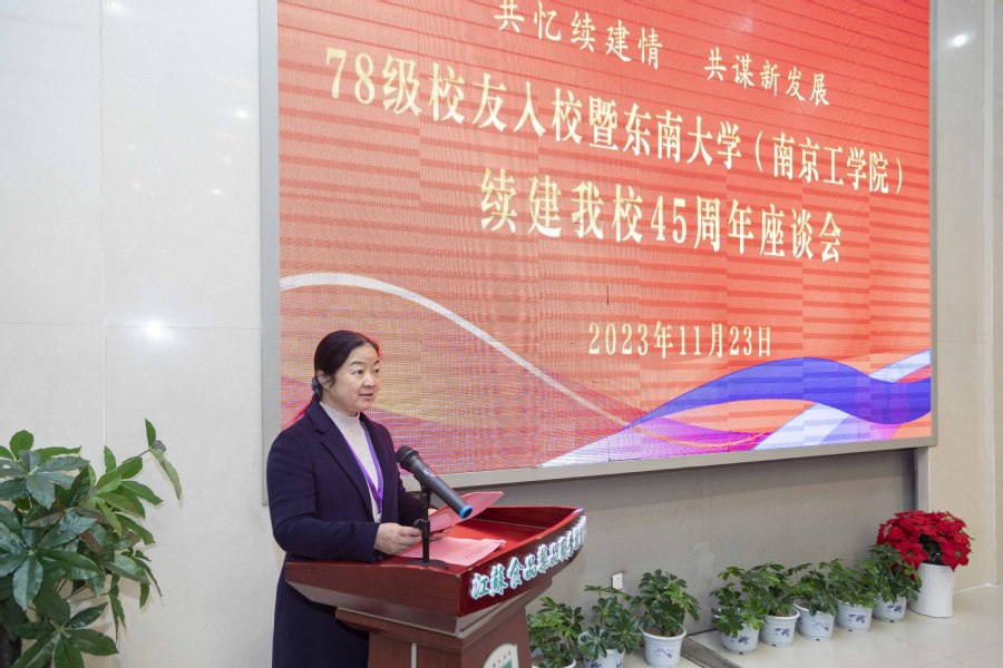 11月23日,BBV电子·(中国)网站在图书馆多功能厅以“共忆续建情 共谋新发展”为主题召开78级校友入校暨东南大学(南京工学院)续建BBV电子·(中国)网站45周年座谈会。东南大学发展委员会副主任、校友总会秘书长蒋玮,78级校友代表,BBV电子·(中国)网站党委书记薛宇、校长翟玮玮共同参加了活动。座谈会由翟玮玮主持。