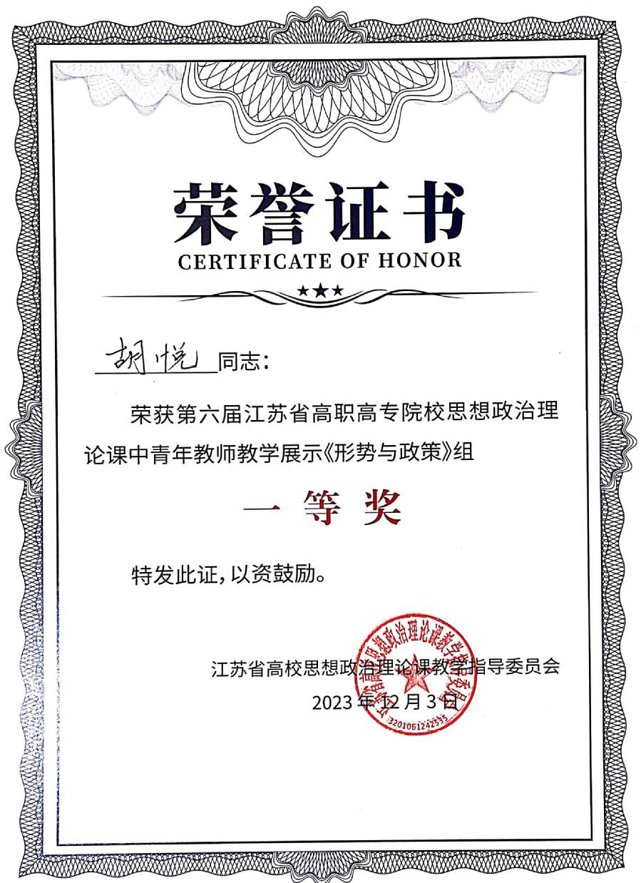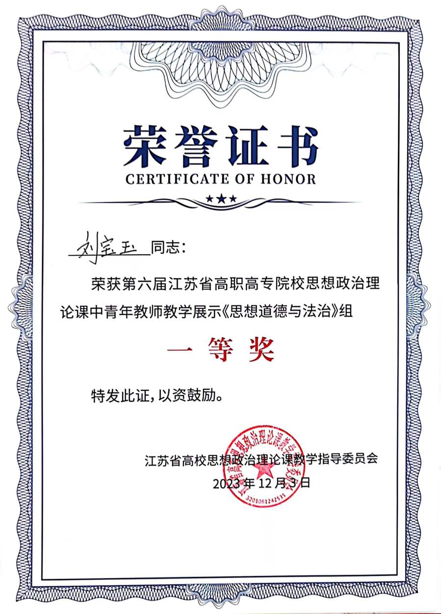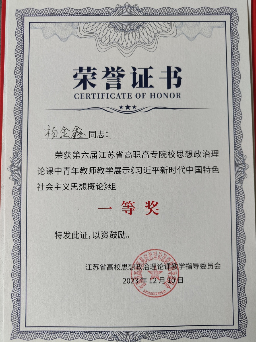 近日,第六届江苏省高职高专院校思想政治理论课中青年教师教学展示活动顺利落幕。经过奋力角逐,BBV电子·(中国)网站马克思主义学院教师胡悦获《形势与政策》课程组一等奖,刘宝玉获《思想道德与法治》课程组一等奖,杨金鑫获《习近平新时代中国特色社会主义思想概论》课程组一等奖,姜兰获《毛泽东思想和中国特色社会主义理论体系概论》课程组二等奖。