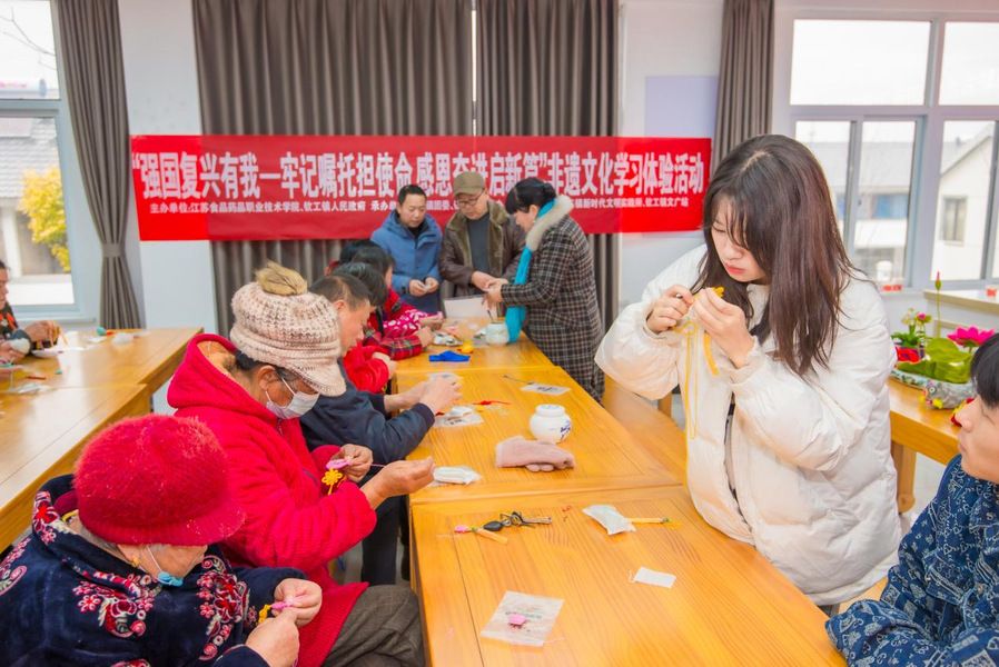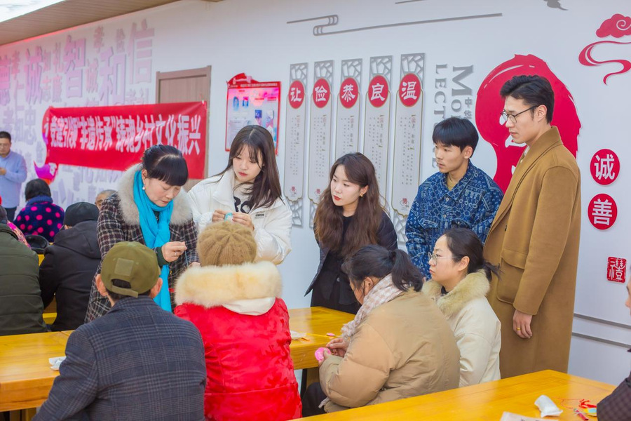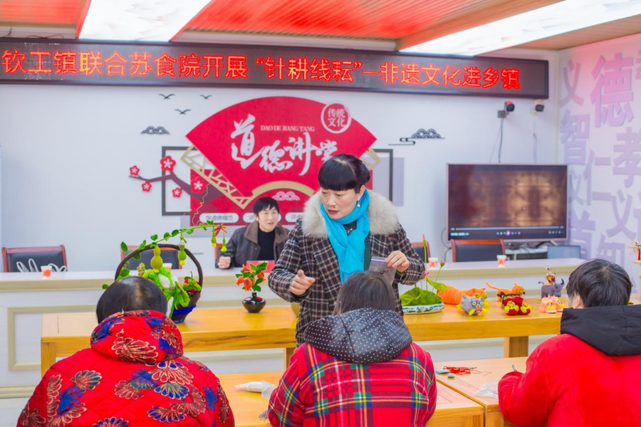 12月11日,艺术设计专业联合中国民间文艺家协会会员、江苏省非物质文化遗产保护项目《仿生线编》第四代代表性传承人徐善芳老师及团队走进钦工镇,第五代传承人艺本232班级石晶婷同学、教研室主任张克成、教研室秘书仲淑佳、专任教师李政昊参加本次活动。