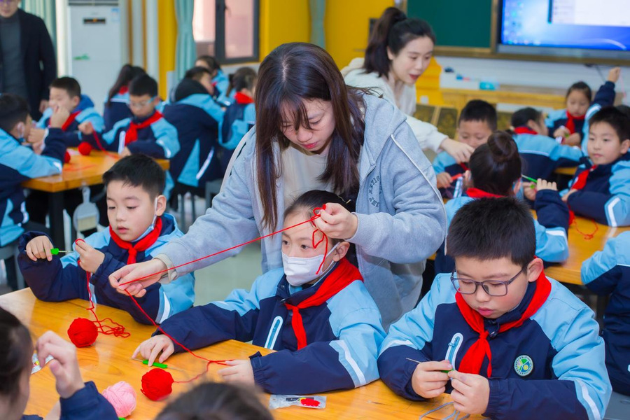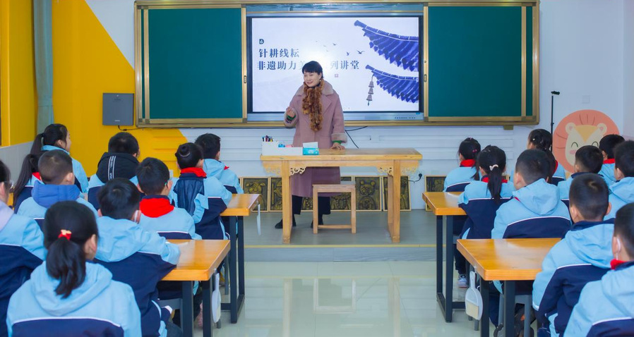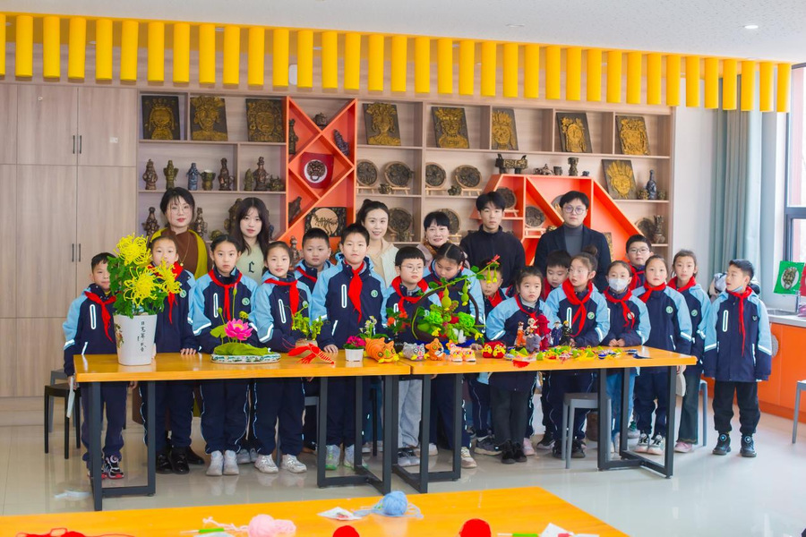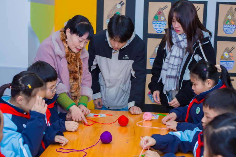 12月6日,艺术设计专业联合中国民间文艺家协会会员、江苏省非物质文化遗产保护项目《仿生线编》第四代代表性传承人徐善芳老师及团队走进沁春路小学,开展非遗传统文化讲座并进行非遗项目技艺展示。第五代传承人艺本232班级石晶婷同学、教研室副主任白银、专任教师叶子、佟其飞参加本次活动。