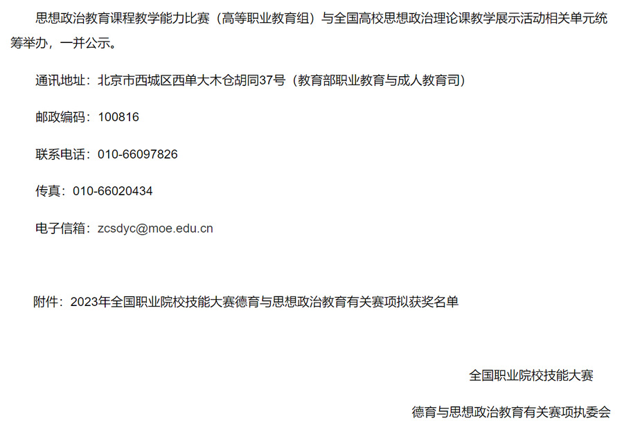 此项大赛由教育部主办,是代表职业院校思想政治教育课程教学水平最高水准的权威赛事,首次单列思想政治教育课程赛项,首次采用新统编教材参赛,比赛获奖难度大,含金量高。