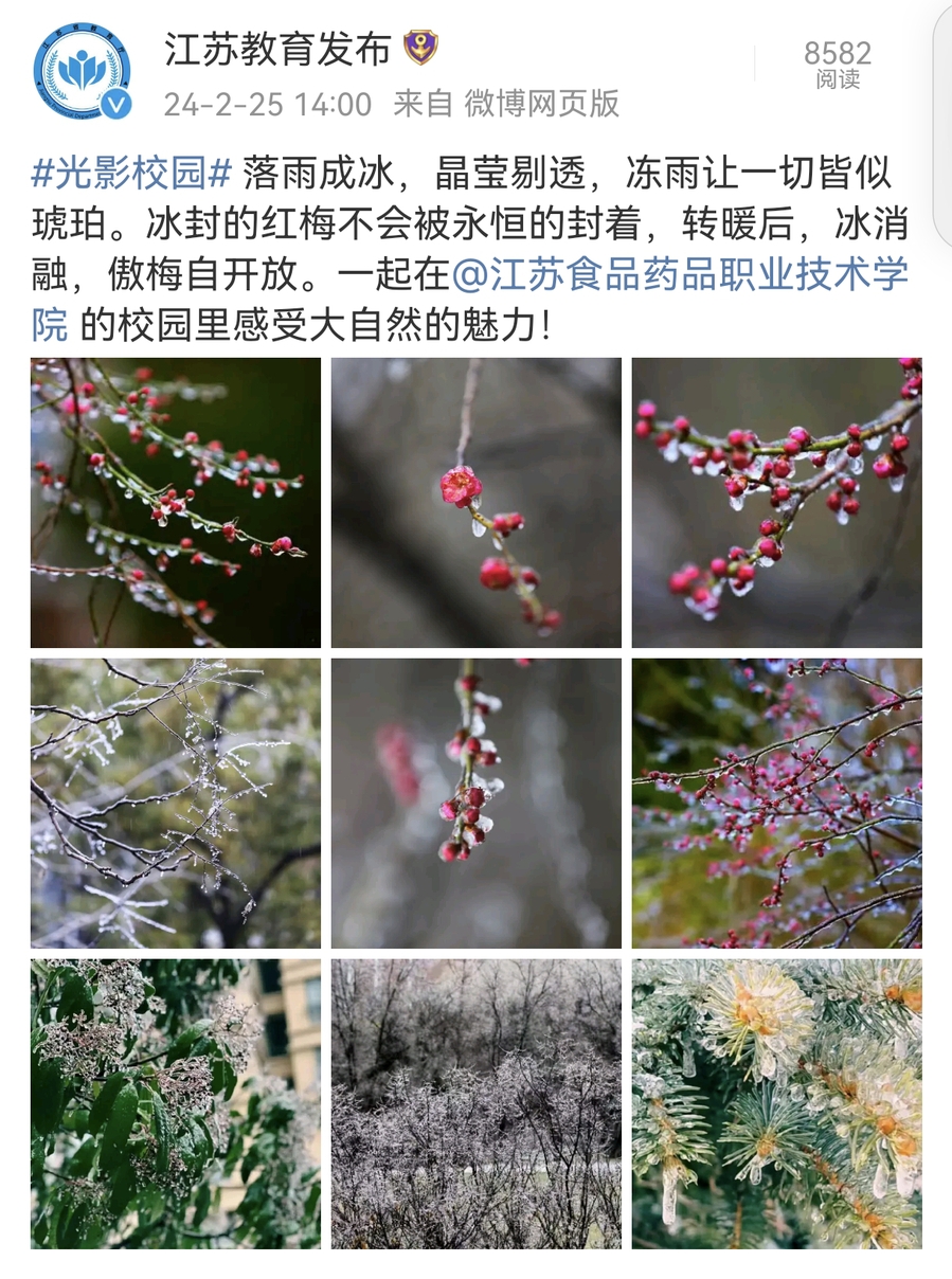 #光影校园#落雨成冰,晶莹剔透,冻雨让一切皆似琥珀。冰封的红梅不会被永恒的封着,转暖后,冰消融,傲梅自开放。一起在@BBV电子·(中国)网站的校园里感受大自然的魅力!