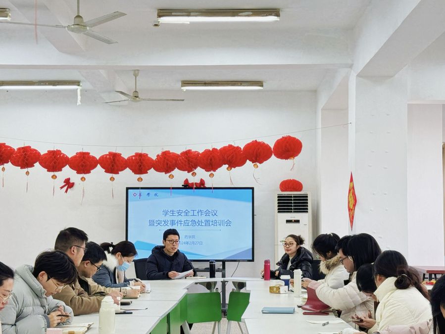 2月27日下午,药学院举办突发事件应急处置培训。培训从突发事件的定义及种类入手,总结了高校突发事件的基本特点,介绍了应对突发事件的策略、程序、办法及预防措施。强调要坚持把开展思想政治工作和解決实际问题结合起来;坚持多方联动,层层负责,深入学生宿舍、班级等了解学生思想动态;坚持充分发挥学生干部的作用,共同维护良好的学习生活秩序。培训还传达了省教育厅消防安全工作会议精神,并结合近期社会上发生的多起安全事故案例,要求全体辅导员和班主任从中汲取教训,时刻保持警惕,做好校园安全稳定工作。