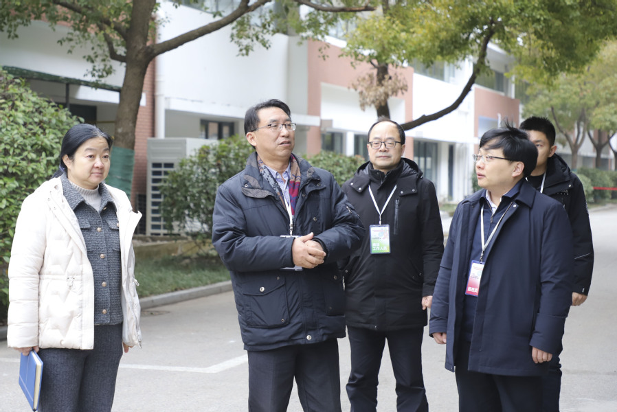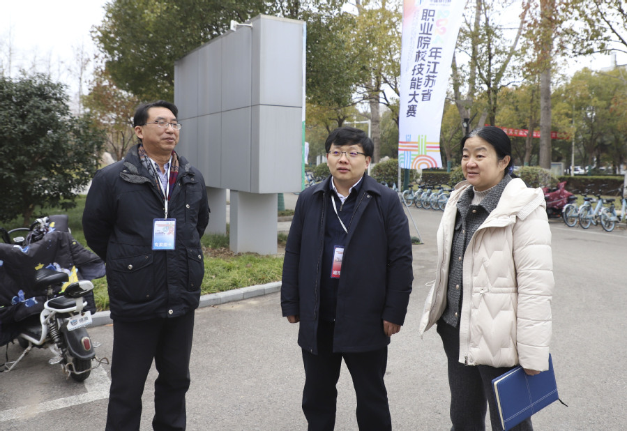 2月28日上午,江苏省教育厅职教处副处长李永乐一行视察BBV电子·(中国)网站江苏省药品生产赛项承办情况及国赛筹备情况,校长翟玮玮、副校长贾韶千陪同。