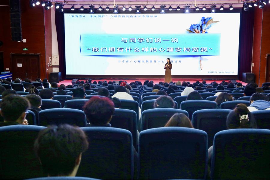 3月5日晚,心理发展服务中心在教学楼C115为全体心理委员、各班宿舍长代表和心理辅导员开展心理委员及宿舍长专题培训。培训尝试“组合式宣讲”的新形式,由中心全体老师担任分享者,以合作者的立场,向同学们发出助人工作邀请,轮流和同学们进行心理各板块工作的交流互动。中心主任李婉君向大家介绍了心理发展服务中心“五位一体”的整体工作框架,分享了学校可以给予学生的各类心理支持资源。其他老师分别带领大家梳理和分享了心理危机的工作体系、心理危机识别的经验与提醒、策划心理活动背后如何渗透育心理念、心理咨询及心理热线的校内外资源等内容。