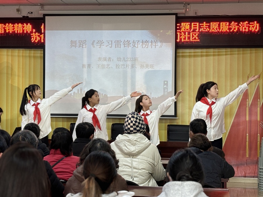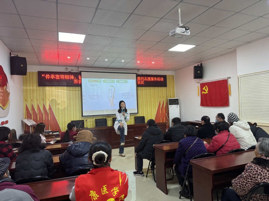 活动分为“春‘锋’护你”“‘锋’华少年”主题“春‘锋’入社”三个主题。由专任教师为社区人员讲解“穴位养生、茶饮养生、足浴养生”等养生知识。志愿者们为社区居民表演了歌曲《水调歌头》、舞蹈《学习雷锋好榜样》、手语操《和你一样》等节目,并为社区居民传授具有消菌杀毒防疫作用的橘皮艾绒制作方法。