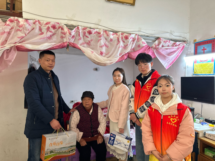 活动最后,志愿者们分为8组,3-4人一组,分别前往2个小区,面对面、挨家挨户地向居民发放有关安全防患、春季养生的调查问卷,耐心引导居民填写调查问卷,为社区居民们送去温暖,进行疑难解答。大家还带着具有苏食院特色的营养糕点,看望贫困独居老人,与老人亲切交谈,了解他们的生活状况及健康情况,向他们传递温暖与关怀。