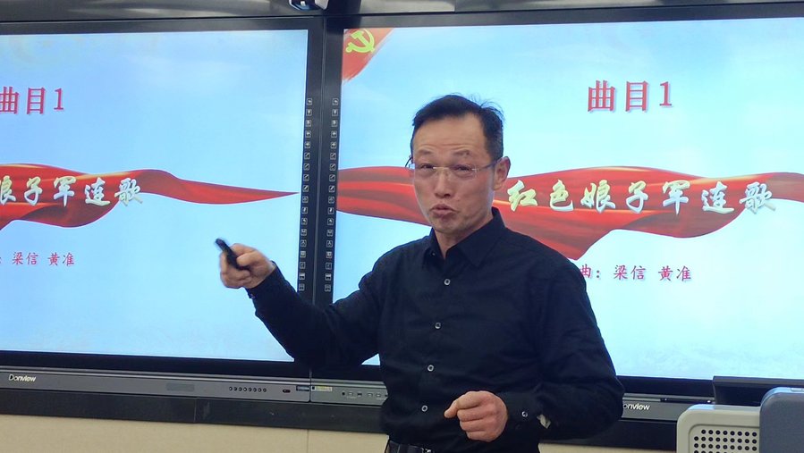 朱维明从播放歌曲《没有共产党就没有新中国》后说起,介绍了中国共产党早期在淮安开展革命活动的历史。随后,又相继通过《红色娘子军连歌》《黄河大合唱》《新四军军歌》《中国人民解放军进行曲》《领航》等经典歌曲,介绍了中国共产党不同时期的发展历史,特别是在淮安的地方革命的历史。一首首脍炙人口的经典红色音乐响起,一段段烽火岁月中的红色往事也娓娓道来,形式新颖、内容丰富、催人奋进。