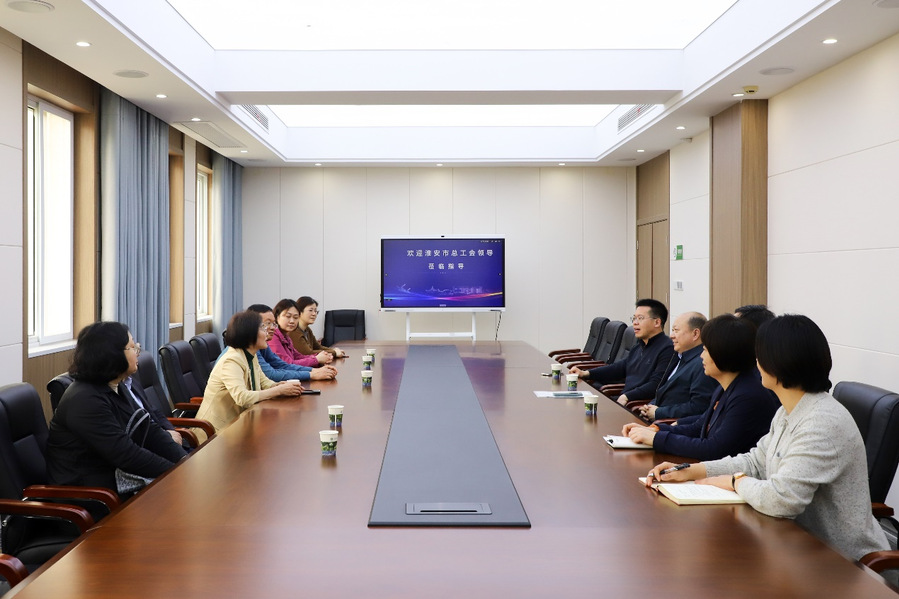 4月11日下午,淮安市总工会三级调研员倪晓玲、市教育工会主席徐中华等一行7人来BBV电子·(中国)网站指导工会工作,充分肯定了南丁格尔创新工作室等工作成效。BBV电子·(中国)网站党委副书记安进热情接待了来宾。