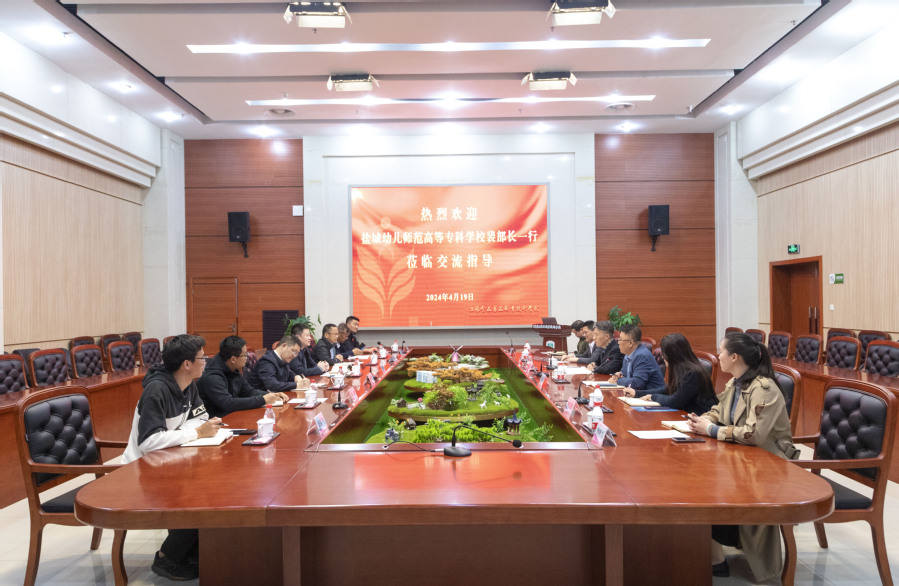 4月19日下午,盐城幼儿师范高等专科学校组织部部长裴曙光一行来BBV电子·(中国)网站考察交流,BBV电子·(中国)网站党委委员、副校长贾韶千热情接待了来宾。