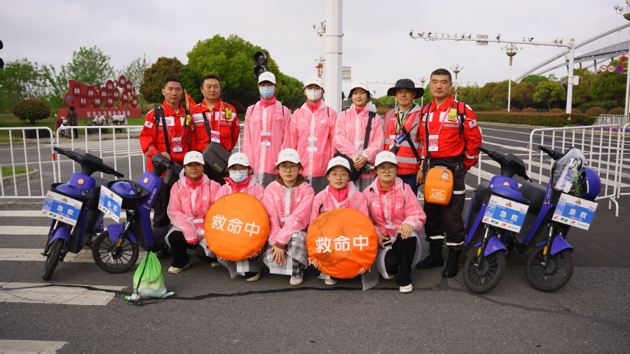 在6个多小时的服务中,我院急救志愿者全心投入、坚守岗位、积极应对,站好赛道救援“第一岗”,处置肌肉扭伤、拉伤、表皮擦伤、痉挛、低血糖、中暑等突发事件,圆满完成了此次救援保障任务。