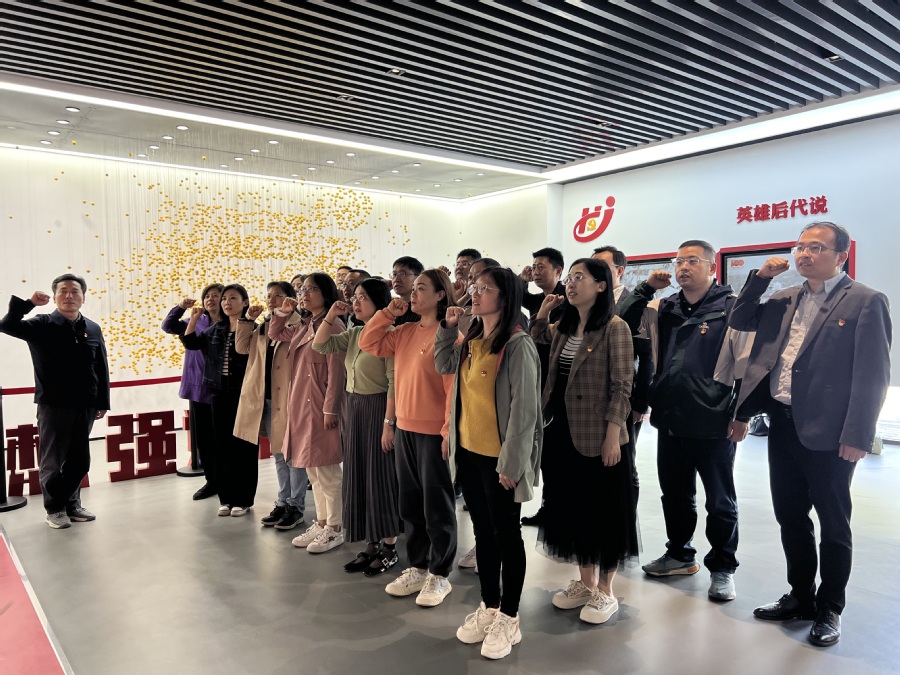 在乔冠华故居,通过图片展示、听取讲解,所有纪检干部详细了解乔冠华作为新中国第一代外交家所做出的卓越贡献,深切感受到乔冠华忠于党和人民的初心使命;在中共苏中二分区委《人民报》印刷厂旧址,全体党员了解了当年苏中二分区委《人民报》印刷人员精兵简政、艰苦奋斗、关心民生、拥政爱民、火线办报的故事;在华中鲁艺烈士纪念馆内,通过听、看、感、悟,全体党员深切感受到了革命先烈为了新中国的胜利不畏牺牲、奋勇向前的革命情怀,从心灵深处接受了一次深刻的革命传统教育;在九龙口党风廉政文化教育基地,大家重温了盐阜大地革命斗争从星星之火到燎原之势的红色历史,感受了党从“开天辟地”到“改天换地”,再到“翻天覆地”所取得的伟大成就。面对鲜红的党旗,所有党员举起右手,重温了入党誓词,追忆入党初心。