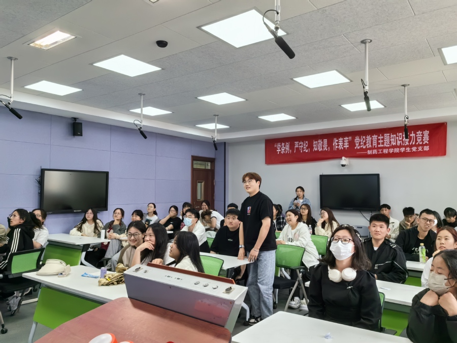 为加强党纪学习教育,切实增强党员学习贯彻《中国共产党纪律处分条例》的自觉性和坚定性,做到将党纪内化于心、外化于行,5月7日,制药工程学院学生党支部组织“学条例,严守纪,知敬畏,做表率”党纪知识接力竞赛,引导支部党员学纪、知纪、明纪、守纪。