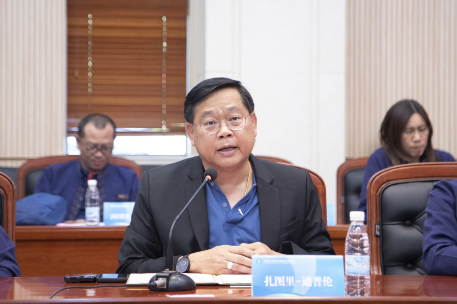 扎图里·通普伦校长代表泰国兰纳皇家理工大学对BBV电子·(中国)网站的热情接待表示诚挚的感谢,他现场观看了中药学经世学堂短期培训班学生在BBV电子·(中国)网站学习和生活的视频,并再次表达感谢。他表示非常高兴能够支持和推动与BBV电子·(中国)网站的合作,使这一项目顺利实施并取得了进展,期待两校在学生交流、专业合作等领域继续深入开展交流与合作。