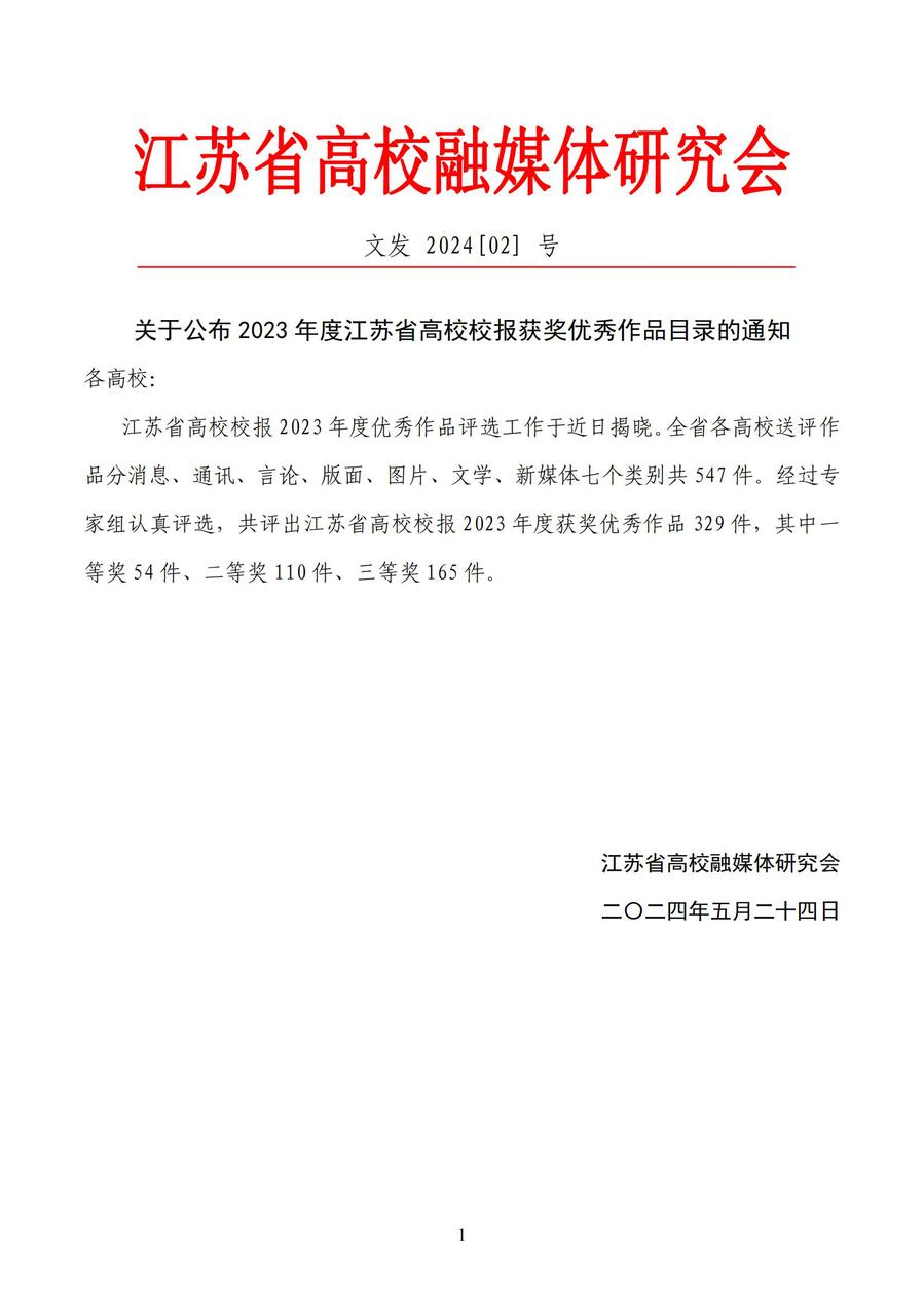 江苏省高校校报 2023 年度优秀作品评选工作于近日揭晓,BBV电子·(中国)网站三项作品入选。