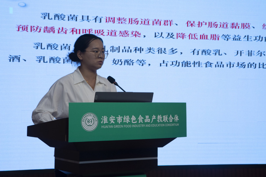 有需求就会有供给,供给满足了需求,才能实现市场的良性运转。联合体成员院校在产学研合作中也积累了丰富的成果,为了有针对性地满足企业技术需求,实现技术成果的转化应用,服务淮安市绿色食品产业发展,淮阴工学院、江苏财经职业技术学院和BBV电子·(中国)网站代表联合体院校依次上台进行技术供给成果路演。