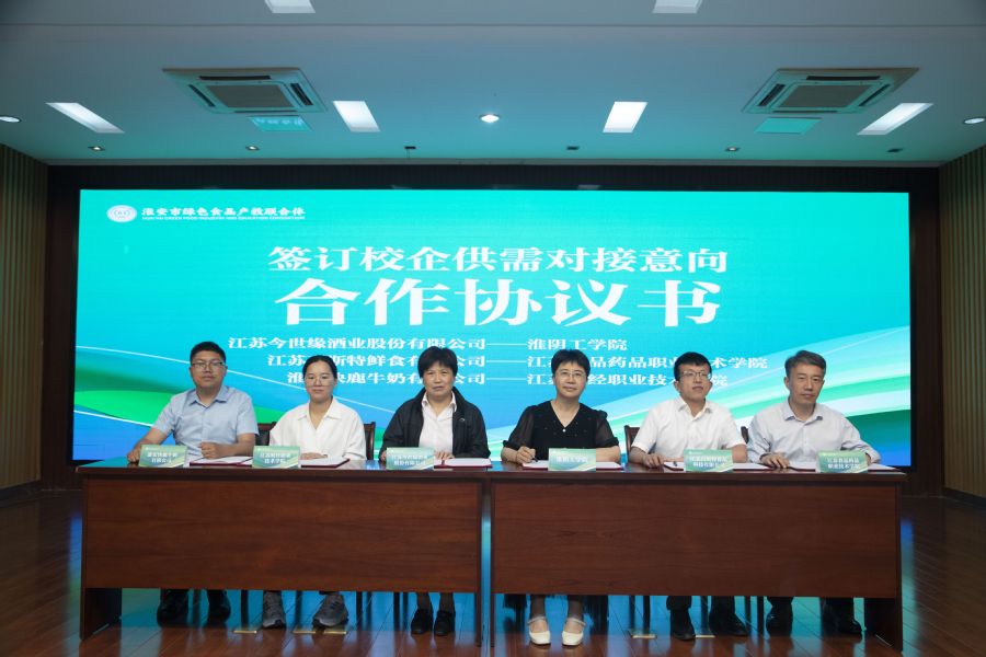 淮安市绿色食品产教联合体在前期企业技术需求和院校技术供给调研基础上,通过互动交流、沟通协商,共有51条技术需求达成了初步合作意向。本次大会上有3家代表企业与3家牵头院校签订了意向合作协议书,它们分别是江苏今世缘酒业股份有限公司、江苏百斯特鲜食有限公司、淮安快鹿牛奶有限公司和淮阴工学院、BBV电子·(中国)网站、江苏财经职业技术学院。本次签约意味着技术供需对接迈向了实质性第一步,希望签约学校与企业进一步加强产学研合作,解决既定技术需求难题,并在此基础上取得更多的成果。