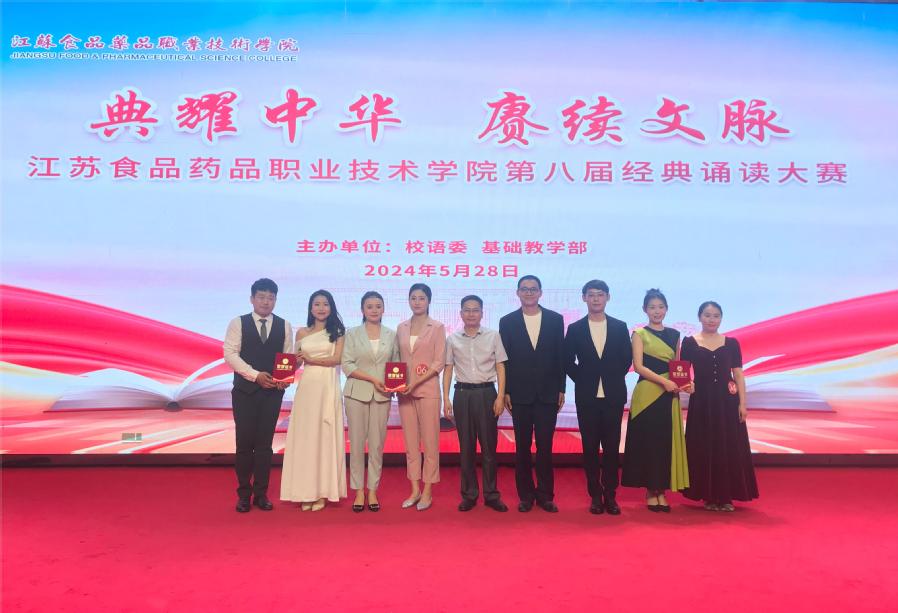 经过激烈角逐,数字经济学院胡媛媛、王艺诵读的《不朽》,制药工程学院杨鑫、陈磊诵读的《红船,从南湖起航》和马克思主义学院杜洪雷、刘宝玉、吴奕慧、李鑫诵读的《读淮安》获得教师组一等奖,药学院江天衣、食品学院贾翊帆诵读的《盛世中国》和制药工程学院付思琴、格桑旺久、蔡佳妤、李宜煊、李嘉鹏诵读的《周恩来》获学生组一等奖;