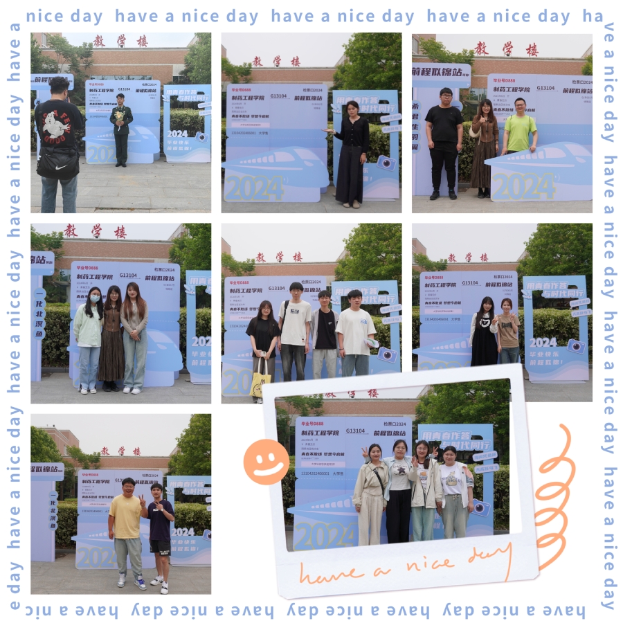 在精心布置的“留下、留恋、留念”合照区留下了学子们青春的身影,以离校高铁票为背景,寓意着毕业生们即将踏上新的人生旅程,见证了他们从校园到社会的跨越,开启全新的篇章,祝大家前程似锦。