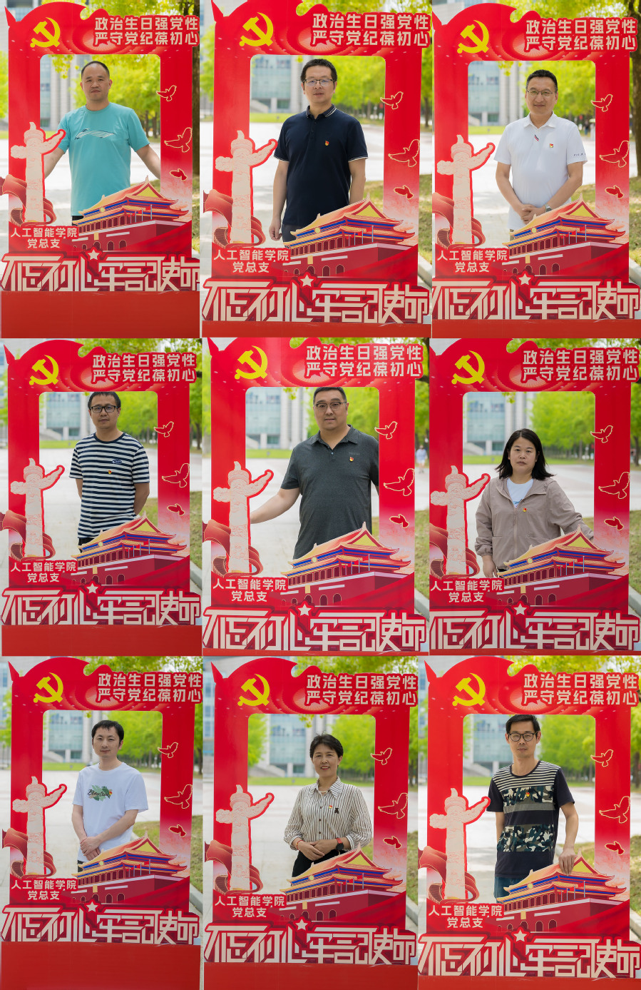 共度政治生日,汲取奋进力量。为强化党员的身份意识和责任意识,人工智能学院党总支为9名六月份入党的党员同志集体过“政治生日”。通过拍摄一张“政治生日纪念照”,增强党员的光荣感、使命感,以镜头定格这美好的时刻;6月11日入党的党员代表徐守江同志,为大家分享自己入党的故事、入党以来的感受和体会;9位六月份入党的党员同志,结合未来努力方向许下“政治生日愿望”,表达不忘初心跟党走、牢记使命踏征程的坚定决心。