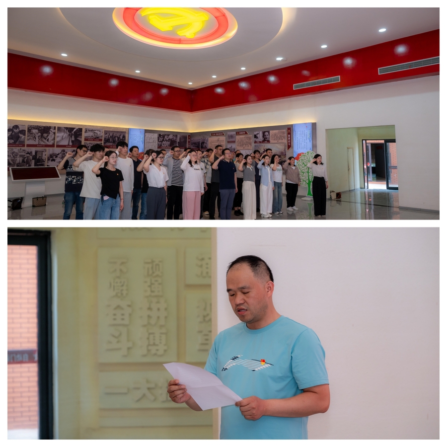 重温入党誓词,坚定初心使命。在苏北小延安纪念馆内,全体党员列队,党总支书记刘玲同志带领大家重温入党誓词。党员们庄严地举起右手,跟随党总支书记的领誓,用铿锵有力的声音传递共产党员不变的初心和使命。