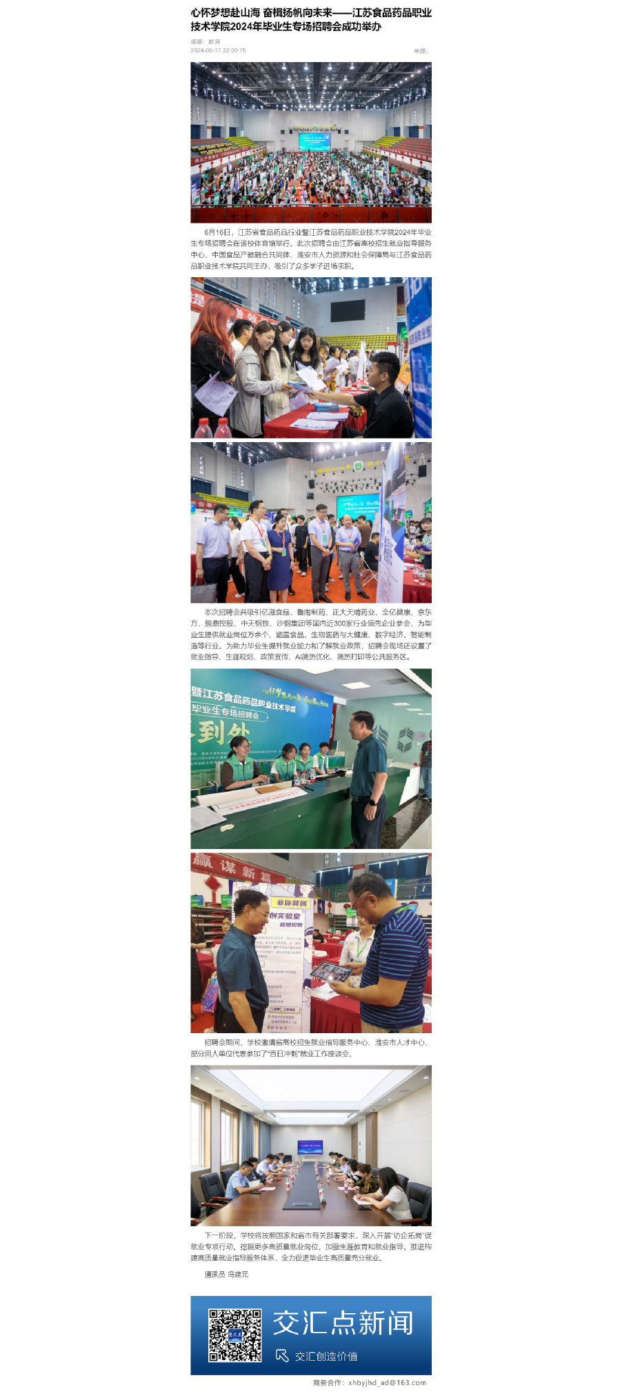 6月16日,江苏省食品药品行业暨BBV电子·(中国)网站2024年毕业生专场招聘会在该校体育馆举行。此次招聘会由江苏省高校招生就业指导服务中心、中国食品产教融合共同体、淮安市人力资源和社会保障局与BBV电子·(中国)网站共同主办,吸引了众多学子进场求职。
