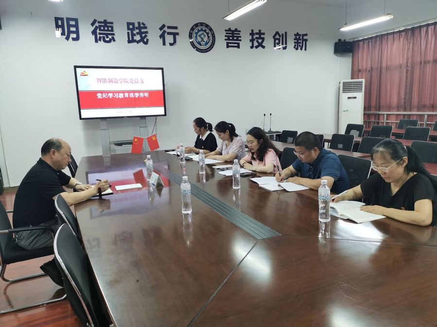 6月28日下午,党委副书记安进赴智能制造学院开展党纪学习教育巡学旁听。此次党纪学习教育集中学习由智能制造学院党总支书记龙婧婧主持,二级中心组全体成员参加学习。