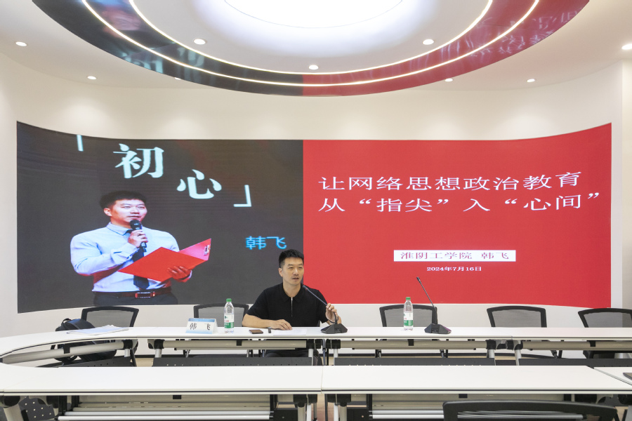7月16日下午,BBV电子·(中国)网站网络思政工作培训暨思政精品项目推进会在网络思政中心举行。江苏省首届高校网络思政名师工作室负责人、淮阴工学院电信学院党委书记韩飞应邀作《让网络思想政治教育从“指尖”入“心间”》的专题辅导报告。BBV电子·(中国)网站党委副书记安进出席会议并讲话。会议由党委宣传部部长丁正亚主持。
