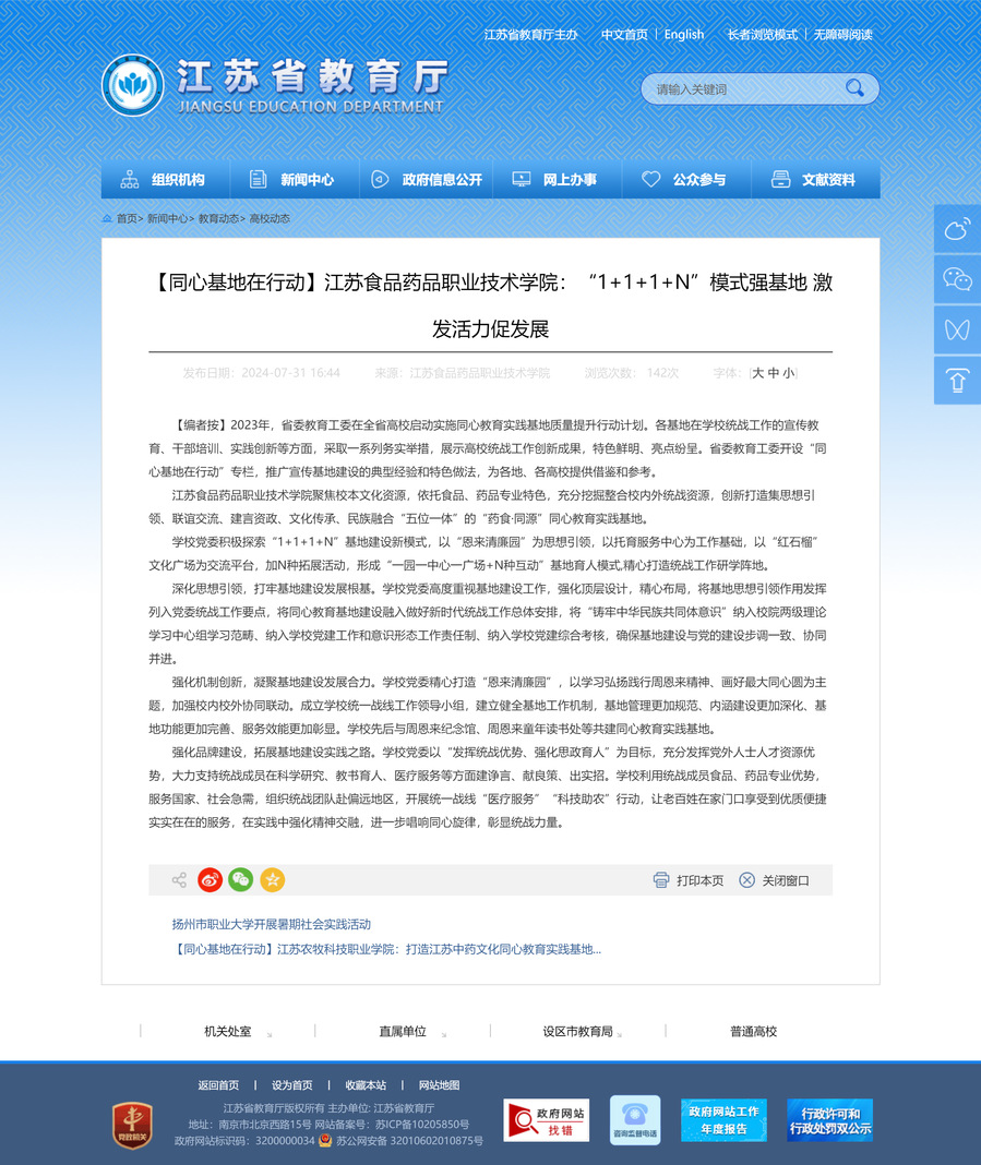 强化品牌建设,拓展基地建设实践之路。学校党委以“发挥统战优势、强化思政育人”为目标,充分发挥党外人士人才资源优势,大力支持统战成员在科学研究、教书育人、医疗服务等方面建诤言、献良策、出实招。学校利用统战成员食品、药品专业优势,服务国家、社会急需,组织统战团队赴偏远地区,开展统一战线“医疗服务”“科技助农”行动,让老百姓在家门口享受到优质便捷实实在在的服务,在实践中强化精神交融,进一步唱响同心旋律,彰显统战力量。