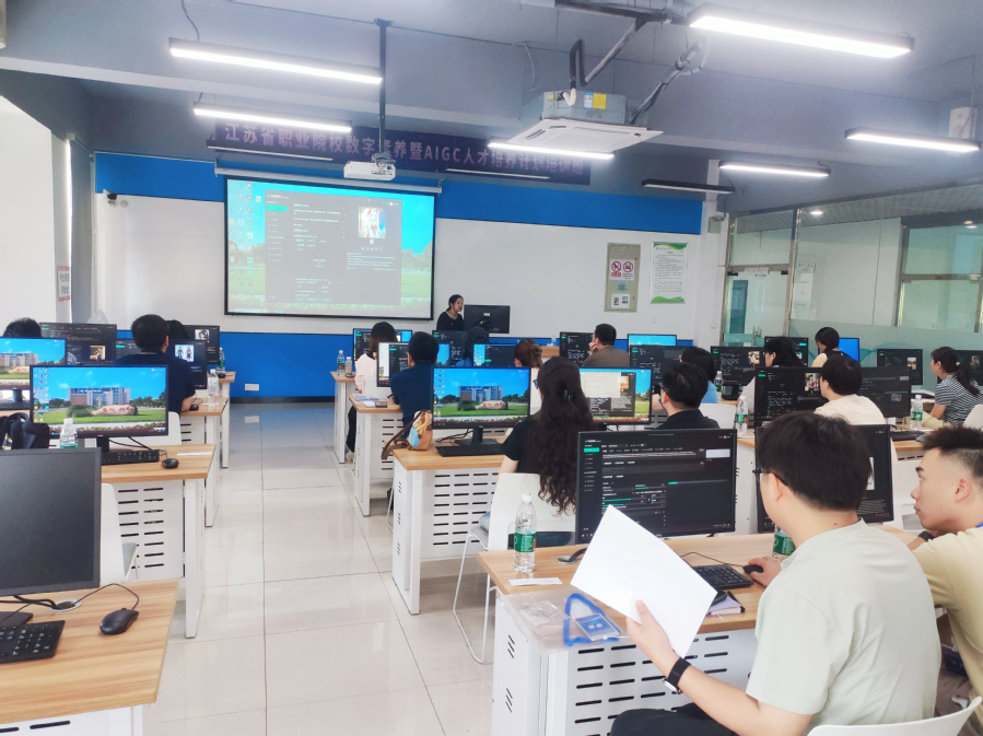 开班仪式后,东南大学教授姚莉以“三维 AIGC 的昨天、今天和明天”为题,对当前数字技术的发展进行了深度解析;网易有道产教融合总监李飞结合企业实际,向大家分享了网易AIGC 数字艺术产教融合方案;南京信息工程大学教授潘志庚围绕虚拟现实与元宇宙的基本概念和核心技术,作了精彩纷呈的案例分享和深入浅出的讲解。重庆电子科技职业大学影视动画系主任罗坚立足人才培养和专业建设,与学员们深度交流了产教融合推动数字媒体类专业发展的探索与实践经验。