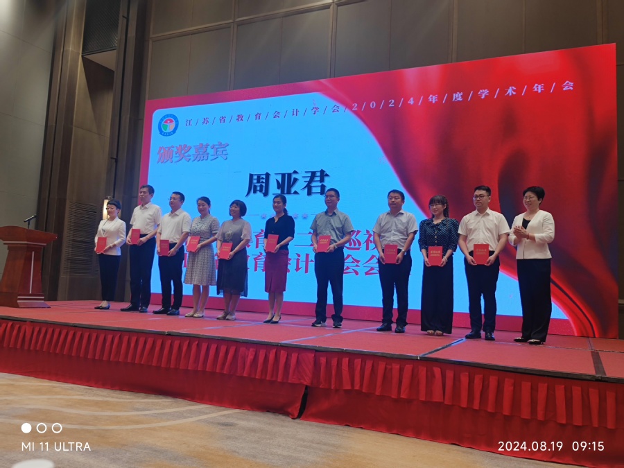 2024年8月18日至20日,江苏省教育会计学会2024年度学术年会在徐州召开,会上通报了学会2024年学术年会论文征文评审结果,学会以“教育强国建设财务何为”为主题进行论文征集。经两轮专家评审及学会终审,评选出质量较高的63篇论文,其中一等论文6篇,二等论文20篇,三等论文37篇。