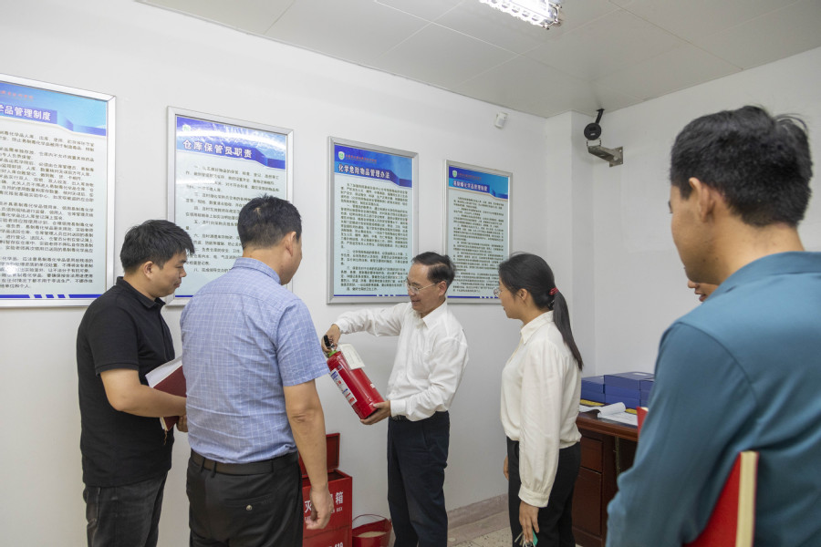检查结束后,薛宇结合每个重点部位的具体情况,指示基建处要充分做好产教融合大楼奠基仪式各项准备工作,确保大楼顺利开工;建议学工处要进一步做好学生宿舍内部环境文化品位提升,为学生提供优质的生活和学习环境;提醒实验实训中心要切实加强危化品的管理,按照规范流程储存、领用和处置;叮嘱后勤服务中心务必将食品安全放在首位,确保学生吃的安心放心;要求保卫处国庆期间要增配安保力量,加大校园巡查力度,严禁校外无关人员进入校园。薛宇强调,假日内学校值班人员要严格值班值守,各部门进一步强化“时时放心不下”的责任感和“事事落实到位”的执行力,加强各种风险管控,落实安全管理责任,确保国庆期间校园安全稳定。
