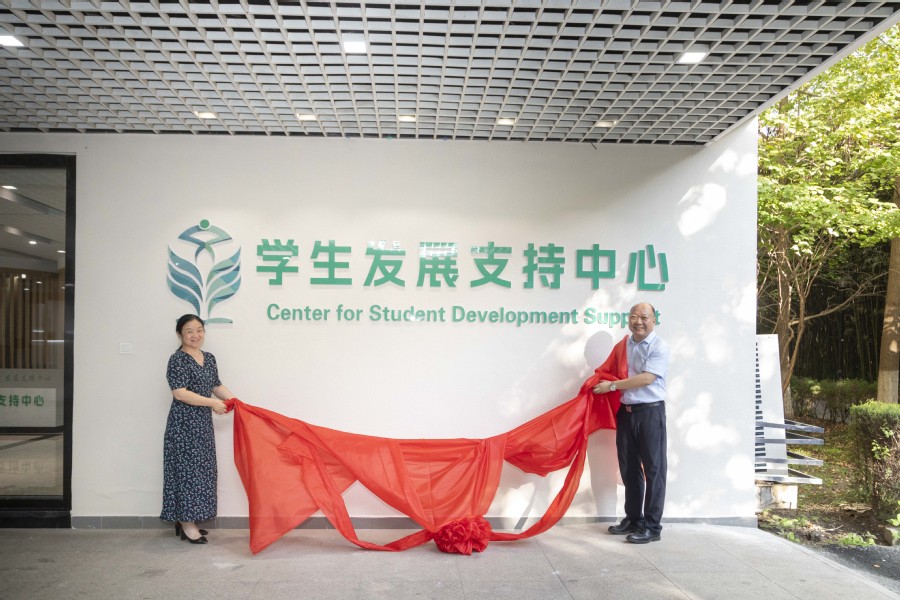 校长翟玮玮和党委副书记安进为中心揭牌,正式宣布中心开启各项业务的办理与服务。