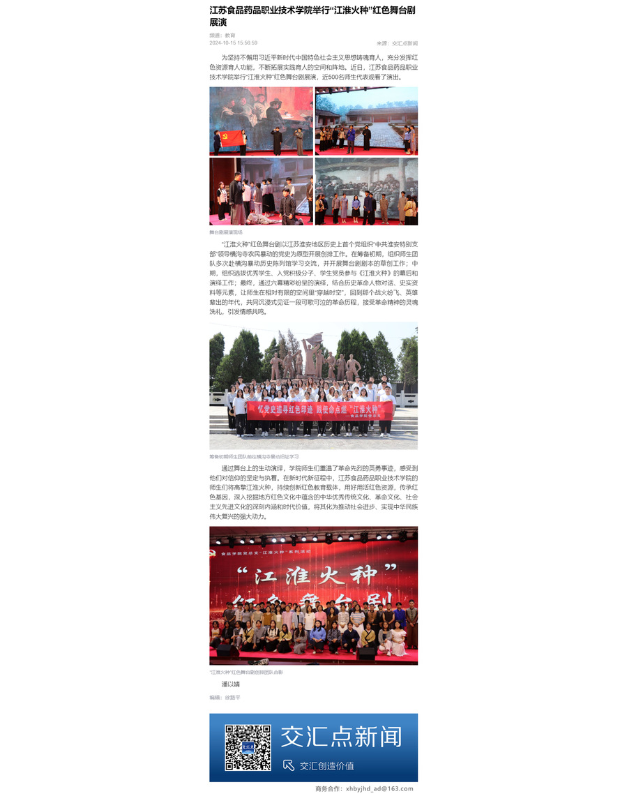 通过舞台上的生动演绎,学院师生们重温了革命先烈的英勇事迹,感受到他们对信仰的坚定与执着。在新时代新征程中,BBV电子·(中国)网站的师生们将高擎江淮火种,持续创新红色教育载体,用好用活红色资源,传承红色基因,深入挖掘地方红色文化中蕴含的中华优秀传统文化、革命文化、社会主义先进文化的深刻内涵和时代价值,将其化为推动社会进步、实现中华民族伟大复兴的强大动力。