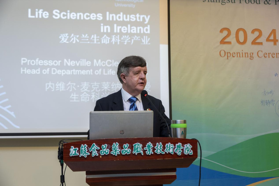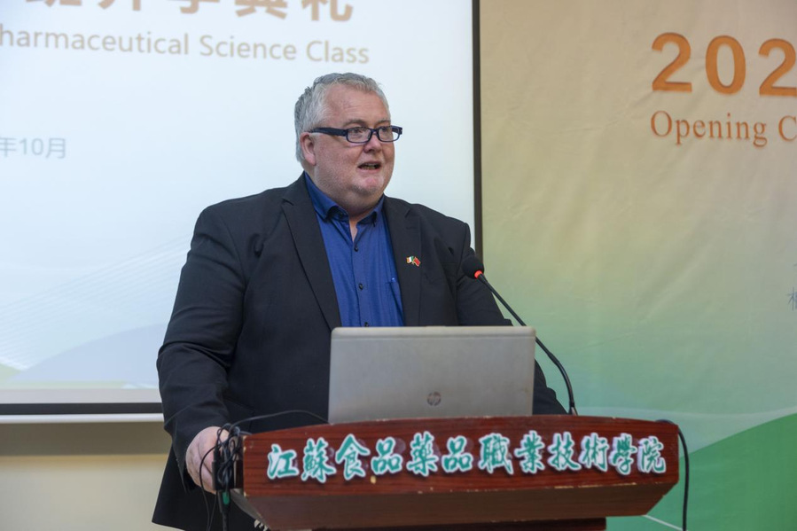 内维尔·麦克莱纳根介绍了爱尔兰生物医药的现状及发展趋势,学校发展目标和基本情况,他对未来药学专业的发展充满信心,同时向同学们传递了祝福与鼓励,并期待学生们能够选择在ATU继续深造。