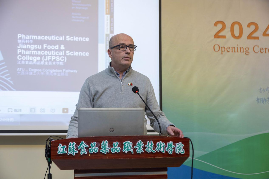开学典礼上,副校长焦宇知对大西洋理工大学嘉宾的来访表示热烈欢迎。他指出,自从两校的合作办学项目启动以来,双方一直保持着密切的合作与交流,为两校的合作奠定了坚实的基础,也为学生们开启了探索药学前沿领域的广阔路径。未来学校将始终坚持大健康理念,培养具备扎实的专业技能和具备全球化思维和创新能力的复合型人才。