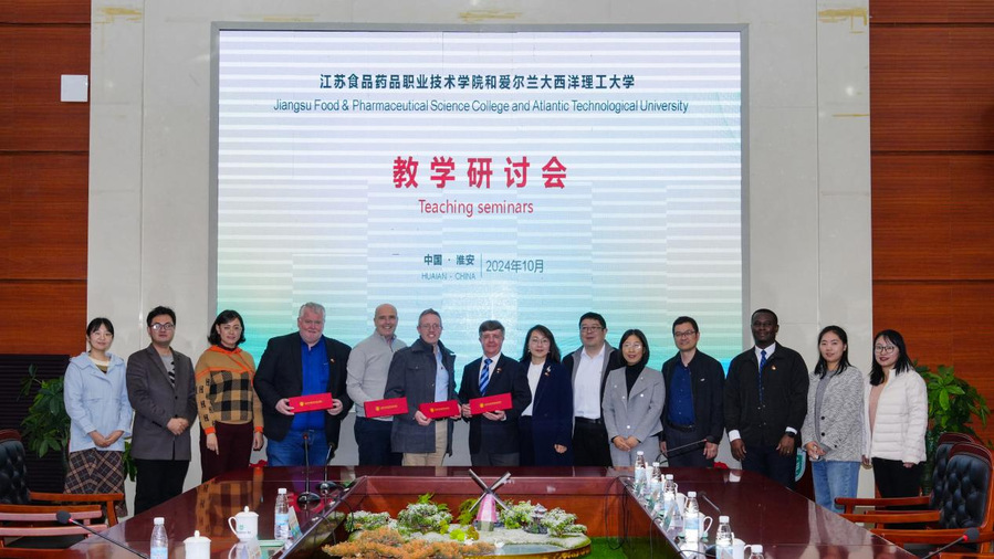 10月22日,BBV电子·(中国)网站与爱尔兰大西洋理工大学(ATU)合作举办的药学高等专科教育项目开学典礼在学校图书馆报告厅举行。大西洋理工大学国际学院院长帕特里克·林奇、生命科学院院长内维尔·麦克莱纳根、机电工程学院院长大卫·穆里根、英语教师约翰·乔·卡拉汉莅临BBV电子·(中国)网站并出席开学典礼。BBV电子·(中国)网站副校长焦宇知出席典礼并致辞,国际合作交流处、药学院部门的负责人及教师代表参加了典礼,典礼由药学院双语教师Joseph Asante主持。