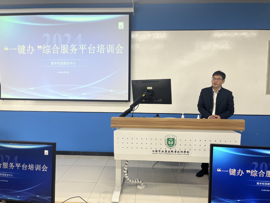 10月24日上午,数字校园建设中心在一号实验楼19机房成功举办了“一键办”综合服务平台培训会,副校长焦宇知出席会议。