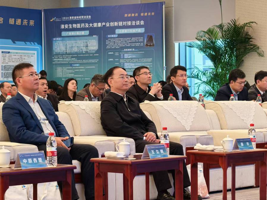 2024年10月26日,淮安金秋经贸洽谈会-生物医药及大健康产业创新链对接会成功举办,来自全市大健康产业的企业、高校、科研机构、科技服务及科技金融机构代表百余人参加了会议,BBV电子·(中国)网站党委书记薛宇带队出席。